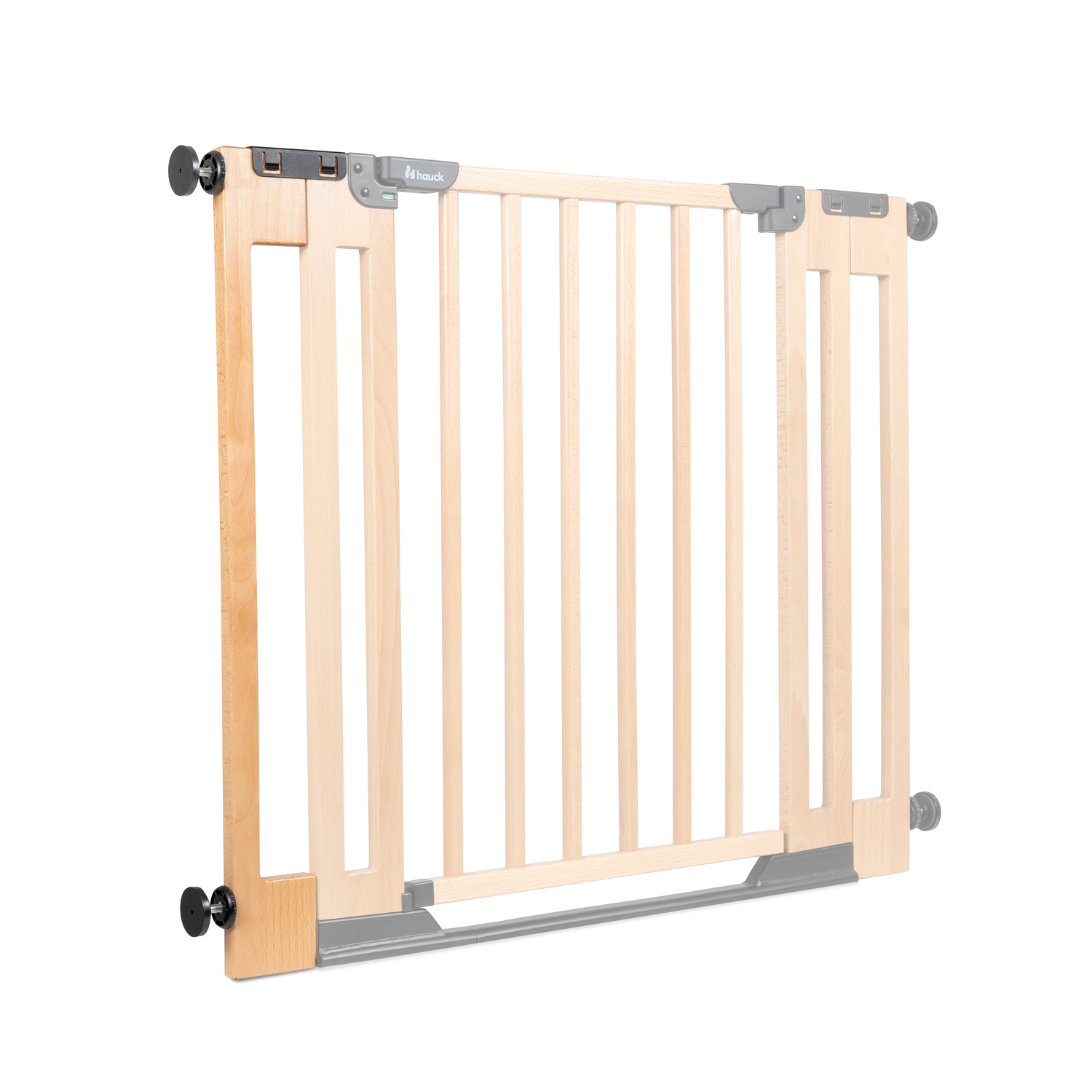 Rychlé, jednoduché a bezpečné: NÁSTAVEC připevněte pomocí dvou spojovacích čepů na levou nebo pravou stranu zábrany Clear Step Easyclose Eco. Stabilizační prvek v horní části branky poskytuje dodatečnou oporu.