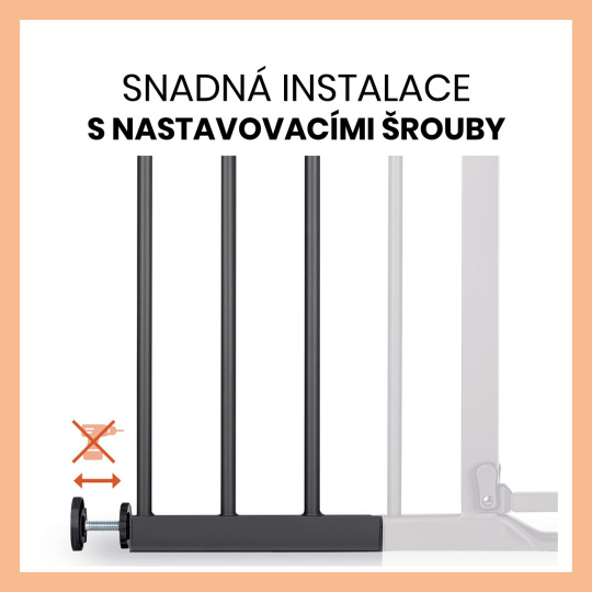 STABILNÍ a bezpečná instalace bez VRTÁNÍ // PRODLOUŽENÍ se jednoduše připevní k zábraně pomocí dvou spojovacích prvků, poté se pomocí polohovacích šroubů z venkovní strany bezpečně upevní do rámu dveří / nebo proti zdi či schodišti.