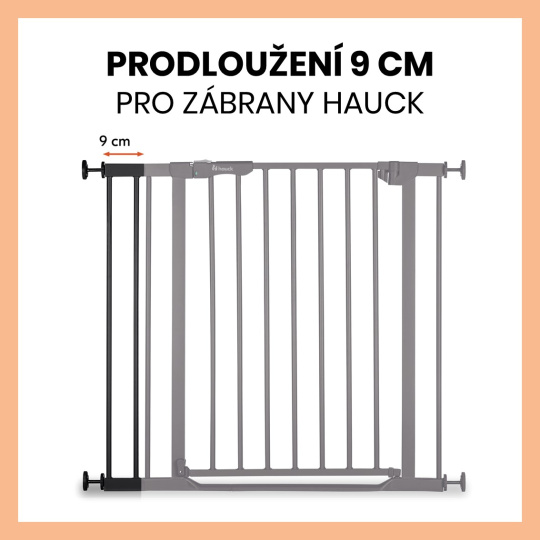 PRODLOUŽENÍ (9 cm) kompatibilní se zábranami hauck // Pokud potřebujeme prodloužit svou hauck zábranu? Žádný problém, můžete jednoduše využít jednu z nabízených velikostí 9 cm / nebo alternativně 21 cm. Prodloužení je kompatibilní se standartními zábranami hauck, např. s Clear Step Autoclose 2.