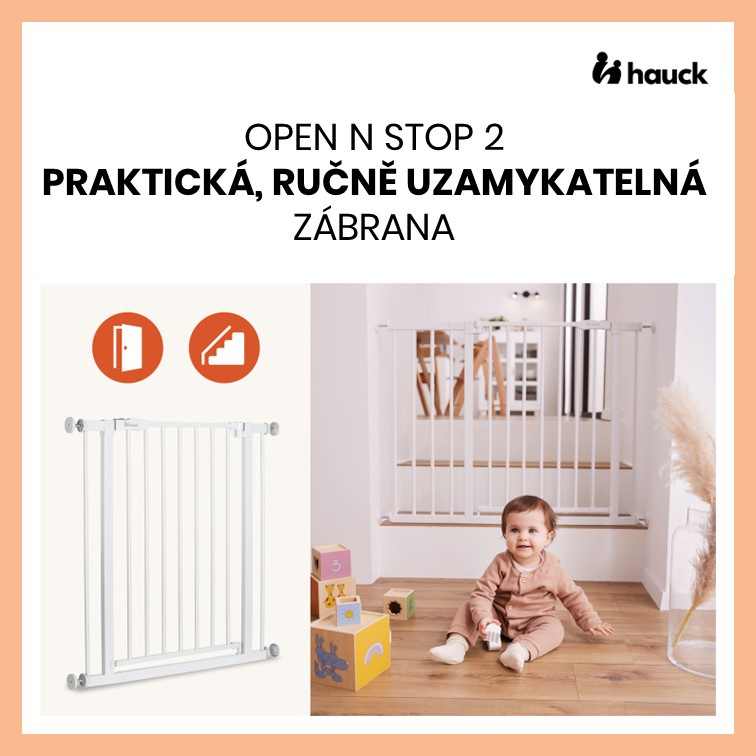 Zábrana Open N Stop 2 je vhodná nejen pro rámy se standardní šířkou 75-80 cm, ale je možné si vybrat i z nabídky zábran s rozšířením o 9 cm nebo o 21 cm. Zábranu je také možné upevnit na kulaté zábradlí pomocí samostatných hauck Y-adaptérů (upínacích šroubů).