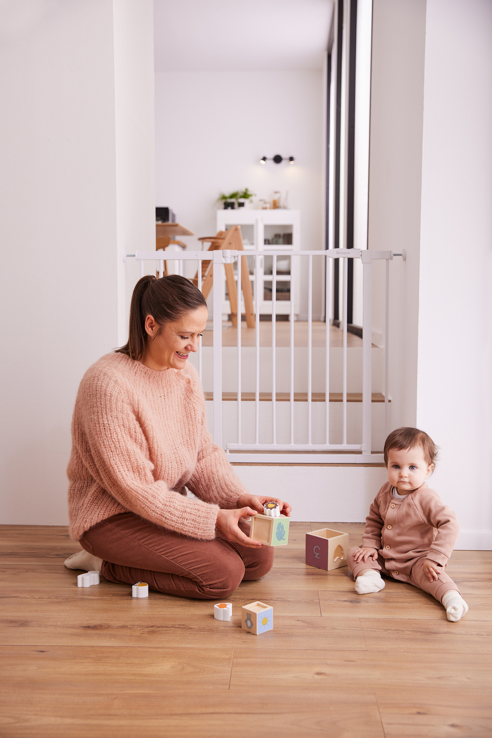 Ať už doma, u prarodičů nebo na dovolené - díky přítlačnému upevnění s nastavovacími šrouby lze dětskou branku snadno namontovat a demontovat v několika jednoduchých krocích.