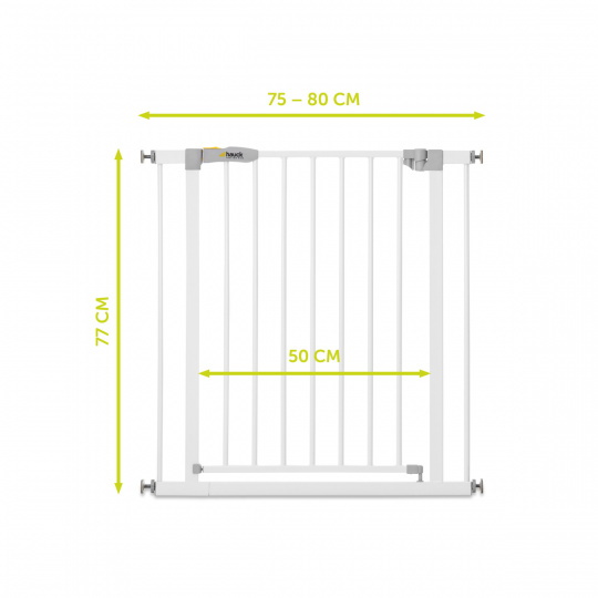 Dětskou zábranu lze bezpečně namontovat do futer, mezi stěny, nebo i na schodiště o šířce 75 - 80 cm pomocí čtyř stavěcích šroubů bez vrtání.