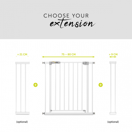 Při použítí rozšíření o 9 cm nebo 21 cm (prodává se samostatně) lze zábranu rozšířit až na 122 cm. Ideální pro zajištění širokých průchodů.