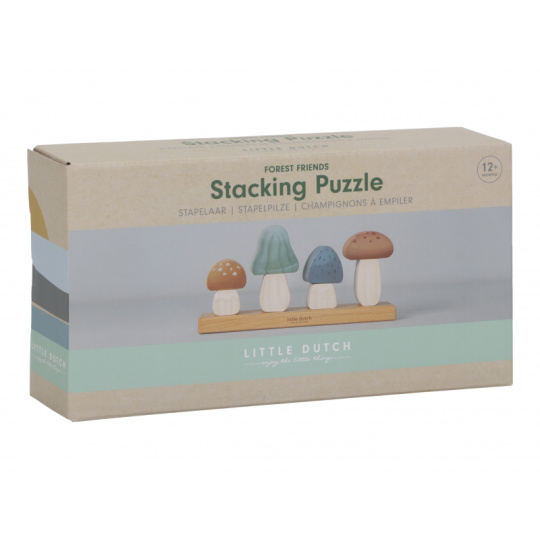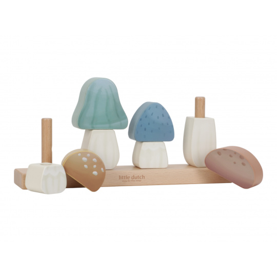 Krásné dřevěné houby jsou tvořeny dvěma díly - kloboučkem a nohou, které se postupně navlékají na stonek na základně. Kloboučky a nohy jsou libovolně kombinovatelné a je tak možné tvořit pokaždé jiné varianty houbiček. Hračka pomáhá rozvíjet jemnou motoriku dítěte a může sloužit i jako krásná dekorace v dětském pokoji. Hračka je součástí designové kolekce hraček Little Dutch Forest Friends inspirované životem v lese. Vyrobeno z dřeva certifikovaného FSC. Rozměry: 24,6 x 5 x 13 cm Vhodné pro děti od 12 měsíců.