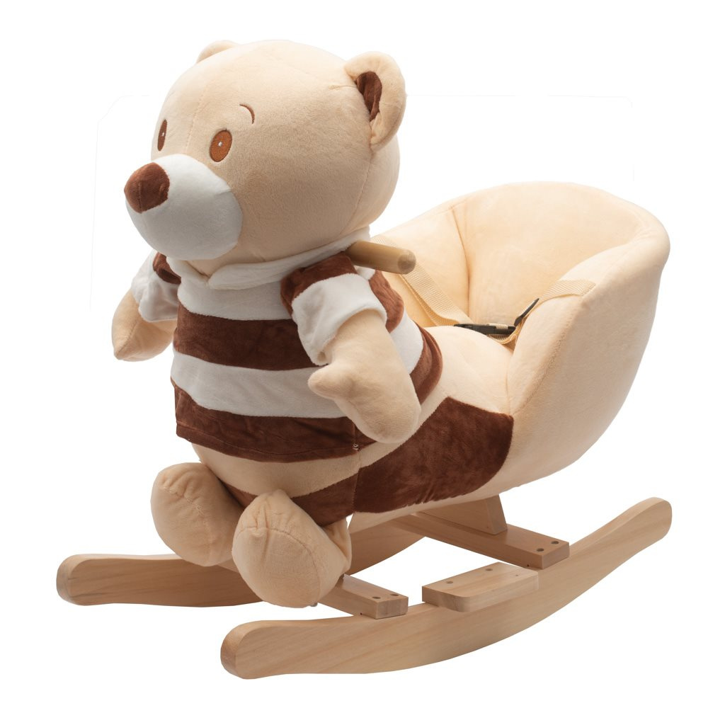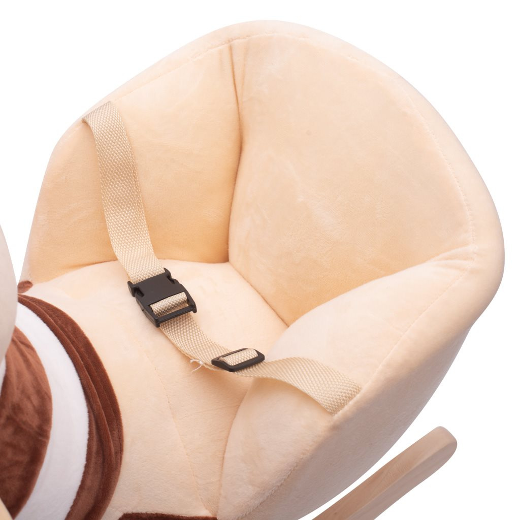 Houpací medvídek PlayTo má sedlo, dřevěné rukojeti a dřevěná stupátka na nohy. Houpání je pro malé děti velmi zábavné procvičuje držení rovnováhy. Medvídek po zmáčknutí tlapky hraje melodii. Dítě si samo dokáže z křesílka dosáhnout na ouško a spustit hudbu. Medvídek je vyroben z kvalitního měkkého plyšového materiálu, díky čemuž si Vaše dítě může dlouho užívat skvělou zábavu. Sedlo je díky optimálnímu tvaru pohodlné a bezpečné. Dítě lze připoutat pomocí bezpečnostního pásu.
