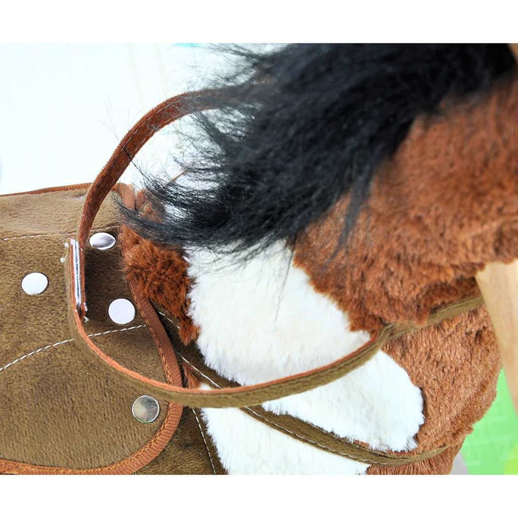 - koník má sedlo s třmeny, uzdu a dřevěné rukojeti