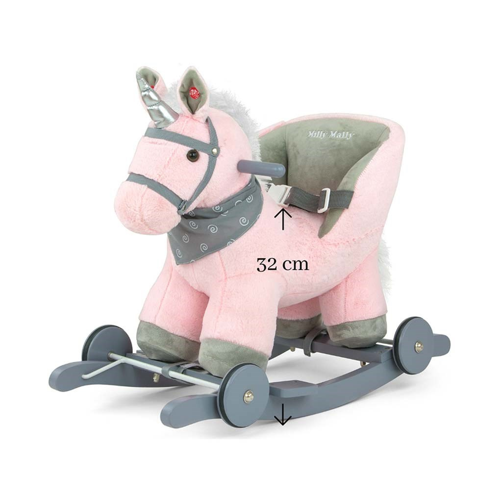 Houpací koník s melodií a kolečky Milly Mally Polly růžový