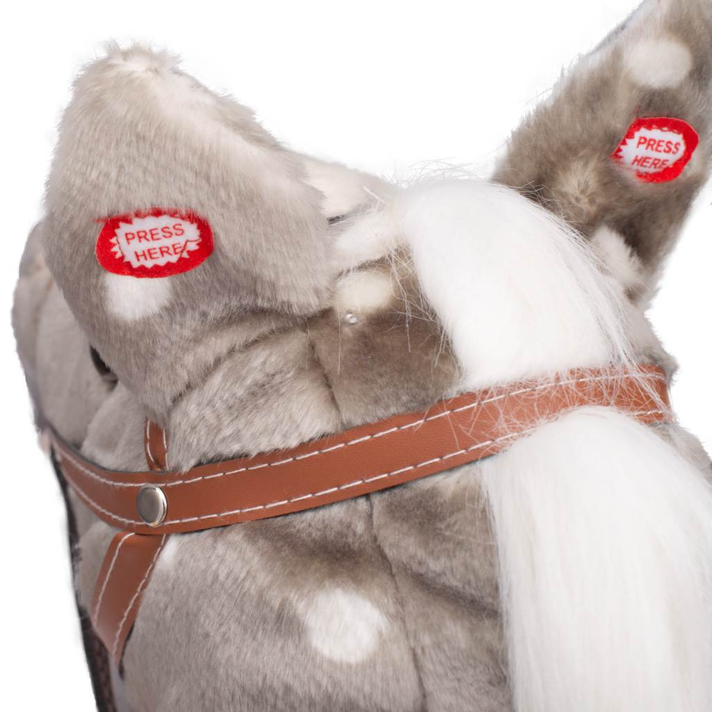 Krásný houpací koník PlayTo byl navržen pro děti, které mají rády houpání a dobrodružství. Je vyroben z hebkého a velmi příjemného na dotyk plyšového materiálu. Po stisknutí ouška koník pohybuje tlamičkou a přehraje českou písničku "Prší, prší, jen se leje" nebo po stisknutí druhého ouška slovenskou verzi "Prší, prší, len sa leje". Baterie se vkládají do pouzdra umístěného na bříšku. Hračka pomáhá dítěti rozvíjet koordinaci pohybů a podňecuje jeho představivost. Houpací lišty lze jednoduše odšroubovat.