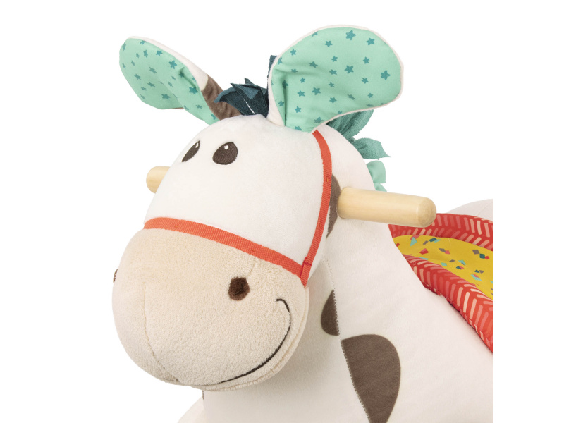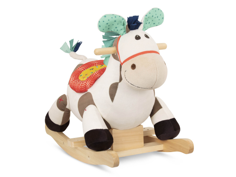 Roztomilý plyšový houpací kůň s dřevěnou základnou a držadly. Během houpání se ozývá klapot koňských kopýtek. Rozměry: 60 x 34 x 46 cm Vhodné pro děti od 18 měsíců do 4 let.