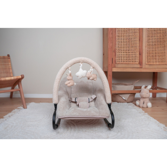 Houpací lehátko Little Dutch s hrazdou poskytne vašemu dítě pohodlné místo k odpočinku i hraní. Pozornost dítěte upoutají tři zavěšené plyšové hračky v podobě slepičky, kytičky a ovečky. vyjímatelná vložka pro nejmenší miminka pevná a houpací poloha nastavitelné polohy opěrky zad i nohou 3-bodový bezpečností pás Rozměry: 77 x 48,5 x 23-55 cm Hmotnost: 2,9 kg Složení: ocel, 100% polyester Vhodné pro děti od narození do 6 měsíců (max. do 9 kg).