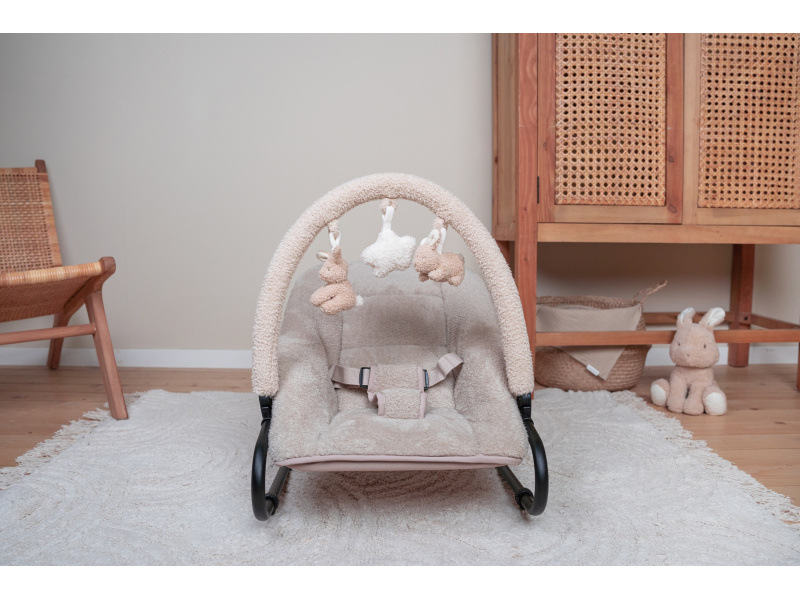 Houpací lehátko Little Dutch s hrazdou poskytne vašemu dítě pohodlné místo k odpočinku i hraní. Pozornost dítěte upoutají tři zavěšené plyšové hračky v podobě slepičky, kytičky a ovečky. vyjímatelná vložka pro nejmenší miminka pevná a houpací poloha nastavitelné polohy opěrky zad i nohou 3-bodový bezpečností pás Rozměry: 77 x 48,5 x 23-55 cm Hmotnost: 2,9 kg Složení: ocel, 100% polyester Vhodné pro děti od narození do 6 měsíců (max. do 9 kg).