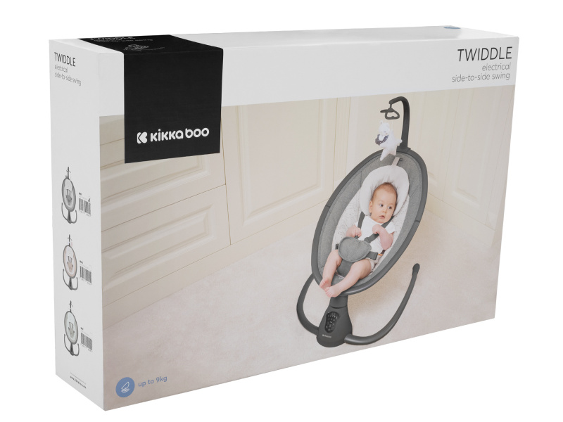 Elektrické houpací lehátko KikkaBoo Twiddle spojuje jemné houpání, moderní funkce a bezpečnost v elegantním provedení – pro spokojené miminko a klidné chvíle rodičů. Díky tichému chodu, chytrým funkcím a elegantnímu designu je ideálním pomocníkem pro klidné chvíle doma i během dne. Pohodlné a zklidňující houpání: Tichý boční pohyb s 5 nastavitelnými rychlostmi napodobuje přirozené houpání v náručí Senzor pohybu automaticky aktivuje houpání, když se dítě pohne nebo rozpláče Hudební panel nabízí 12 melodií a 5 zvuků přírody pro uklidňující atmosféru Časovač s volbou 15, 30 nebo 60 minut umožňuje přizpůsobit délku houpání potřebám dítěte Bezpečnost a komfort: Pětibodový bezpečnostní pás pro jistotu a stabilní polohu dítěte Protiskluzové nožičky zajišťují stabilitu během používání Odnímatelná hrazdička s hračkami podporuje smyslový rozvoj Dálkové ovládání pro snadné nastavení na dálku Praktické a elegantní provedení: Lehký hliníkový rám – snadné přenášení a moderní vzhled Napájení přes AC adaptér pro pohodlné používání bez nutnosti baterií Rozměry: 61 × 65 × 49–73 cm Hmotnost: 3,3 kg Vhodné pro děti od narození do 6 měsíců (max. 9 kg)