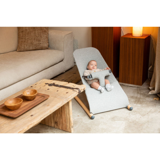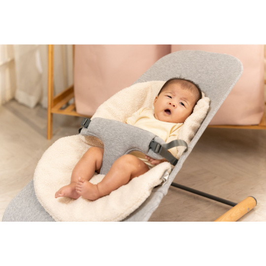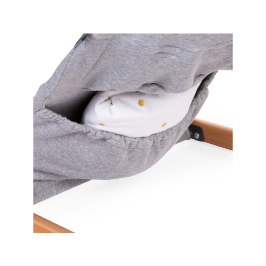 Nadčasové houpací lehátko v minimalistickém provedení se při pohybu dítěte jemně houpe. Lehátko s jednou polohou vyniká svojí jednoduchostí i pohodlím pro dítě, kterému poskytuje optimální oporu krku i zad. Měkké polstrování bezpečnostního pásu zajišťuje bezpečné i pohodlné připoutání dítěte.Praktická kapsa na zadní straně lehátka umožňuje uložení drobností. Rozměry: 74 x 46 x 56 cm Materiál: bukové dřevo, ocel, tkanina 60% bavlna, 40% polyester, síťovina 100% nylon Potah je možno prát v pračce. Vhodné pro děti od narození do 9 kg.
