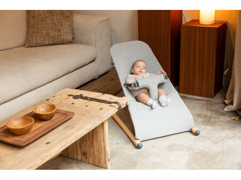 Nadčasové houpací lehátko v minimalistickém provedení se při pohybu dítěte jemně houpe. Lehátko s jednou polohou vyniká svojí jednoduchostí i pohodlím pro dítě, kterému poskytuje optimální oporu krku i zad. Měkké polstrování bezpečnostního pásu zajišťuje bezpečné i pohodlné připoutání dítěte.Praktická kapsa na zadní straně lehátka umožňuje uložení drobností. Rozměry: 74 x 46 x 56 cm Materiál: bukové dřevo, ocel, tkanina 60% bavlna, 40% polyester, síťovina 100% nylon Potah je možno prát v pračce. Vhodné pro děti od narození do 9 kg.