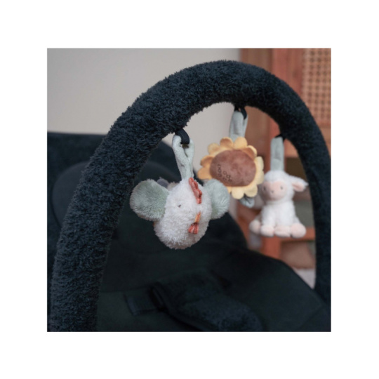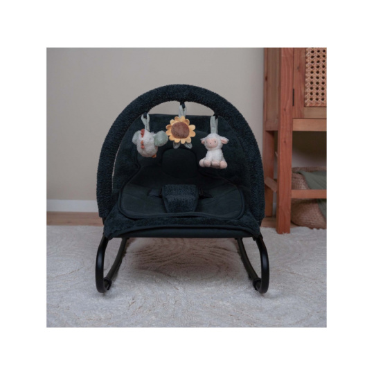 Houpací lehátko Little Dutch s hrazdou poskytne vašemu dítě pohodlné místo k odpočinku i hraní. Pozornost dítěte upoutají tři zavěšené plyšové hračky v podobě slepičky, kytičky a ovečky. vyjímatelná vložka pro nejmenší miminka pevná a houpací poloha nastavitelné polohy opěrky zad i nohou 3-bodový bezpečností pás Rozměry: 77 x 48,5 x 23-55 cm Hmotnost: 2,9 kg Složení: ocel, 100% polyester Vhodné pro děti od narození do 6 měsíců (max. do 9 kg).