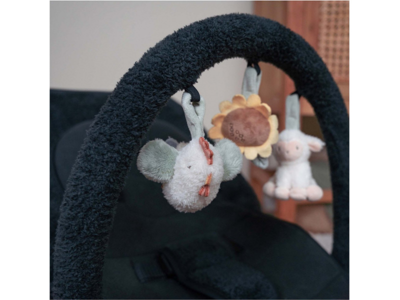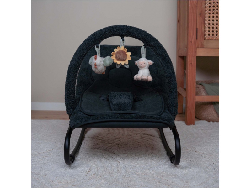 Houpací lehátko Little Dutch s hrazdou poskytne vašemu dítě pohodlné místo k odpočinku i hraní. Pozornost dítěte upoutají tři zavěšené plyšové hračky v podobě slepičky, kytičky a ovečky. vyjímatelná vložka pro nejmenší miminka pevná a houpací poloha nastavitelné polohy opěrky zad i nohou 3-bodový bezpečností pás Rozměry: 77 x 48,5 x 23-55 cm Hmotnost: 2,9 kg Složení: ocel, 100% polyester Vhodné pro děti od narození do 6 měsíců (max. do 9 kg).