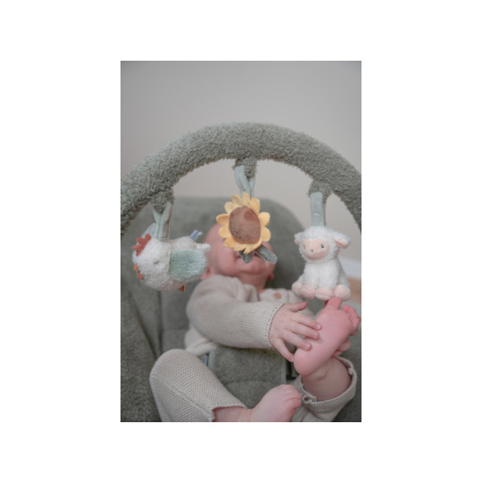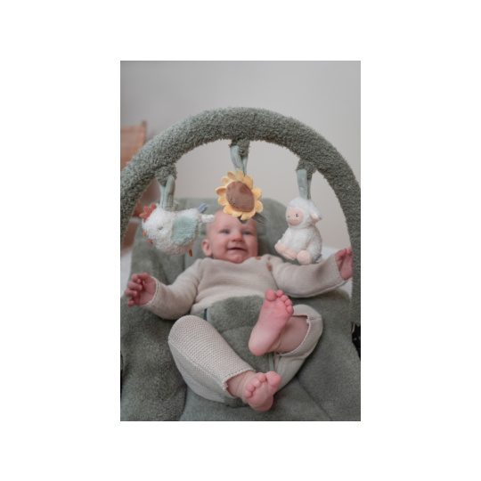 Houpací lehátko Little Dutch s hrazdou poskytne vašemu dítě pohodlné místo k odpočinku i hraní. Pozornost dítěte upoutají tři zavěšené plyšové hračky v podobě slepičky, kytičky a ovečky. vyjímatelná vložka pro nejmenší miminka pevná a houpací poloha nastavitelné polohy opěrky zad i nohou 3-bodový bezpečností pás Rozměry: 77 x 48,5 x 23-55 cm Hmotnost: 2,9 kg Složení: ocel, 100% polyester Vhodné pro děti od narození do 6 měsíců (max. do 9 kg).