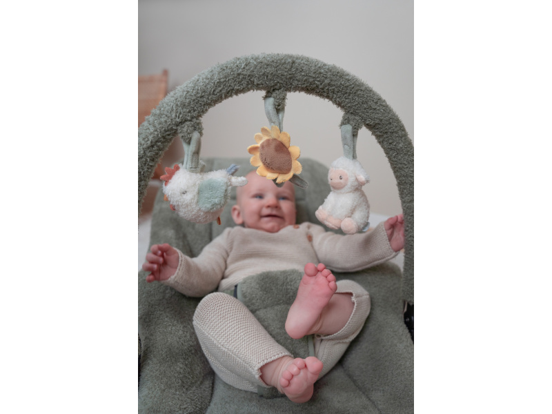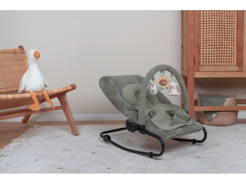 Houpací lehátko Little Dutch s hrazdou poskytne vašemu dítě pohodlné místo k odpočinku i hraní. Pozornost dítěte upoutají tři zavěšené plyšové hračky v podobě slepičky, kytičky a ovečky. vyjímatelná vložka pro nejmenší miminka pevná a houpací poloha nastavitelné polohy opěrky zad i nohou 3-bodový bezpečností pás Rozměry: 77 x 48,5 x 23-55 cm Hmotnost: 2,9 kg Složení: ocel, 100% polyester Vhodné pro děti od narození do 6 měsíců (max. do 9 kg).