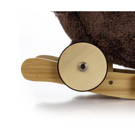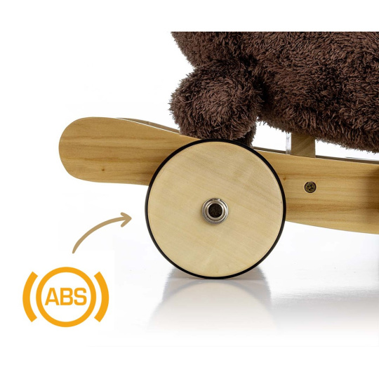 A hinta lábtartókkal és fogantyúkkal ellátott fa hintarudakkal rendelkezik, amelyek segítenek megőrizni az egyensúlyt játék közben, valamint csúszásgátló felületű összecsukható kerekekkel, amelyek másodpercek alatt csodálatos plüssjárgá alakítják.