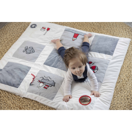 - děti mohou na dece objevovat růzorodost materiálů, bezpečné zrcátko a kousátko