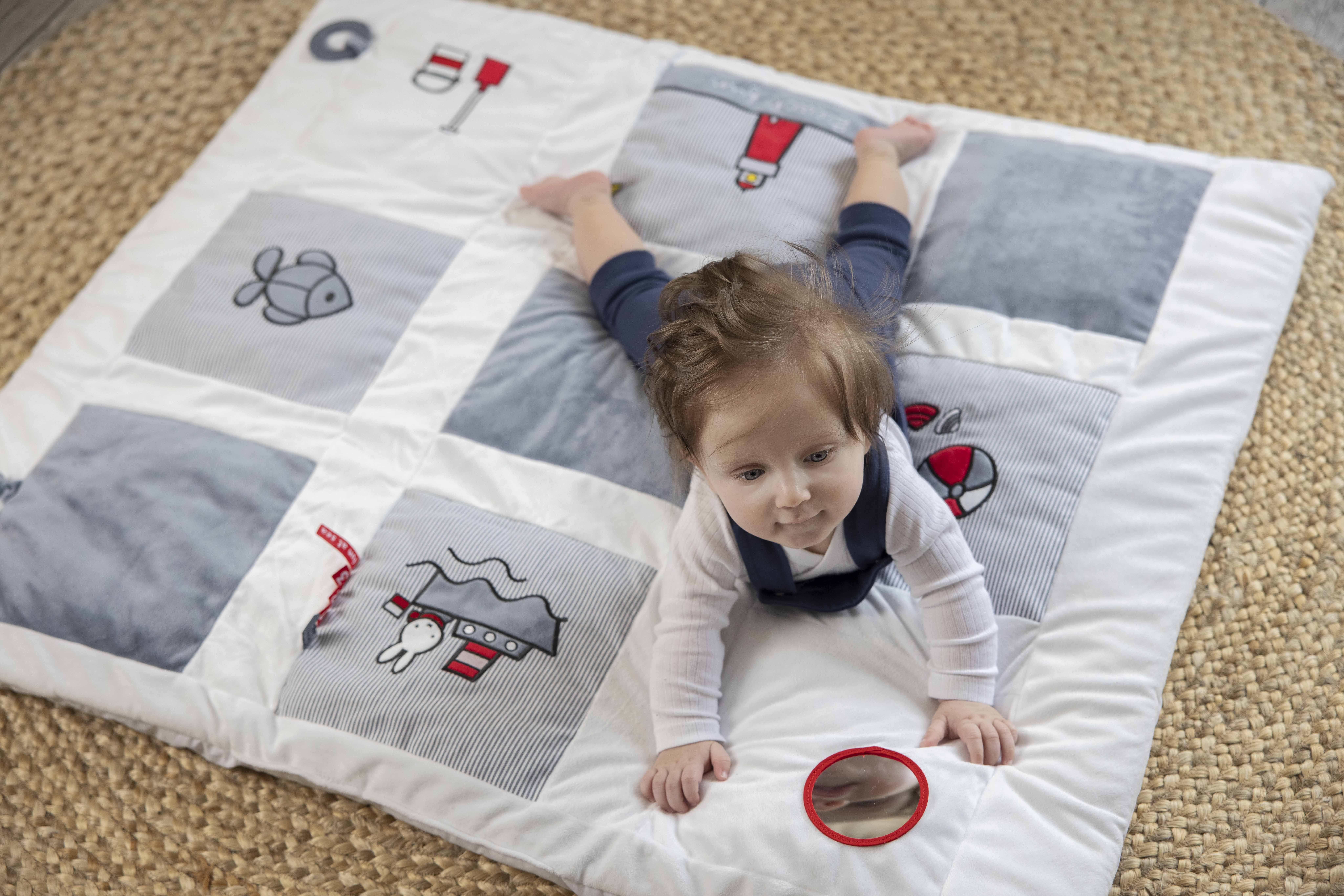 - děti mohou na dece objevovat růzorodost materiálů, bezpečné zrcátko a kousátko