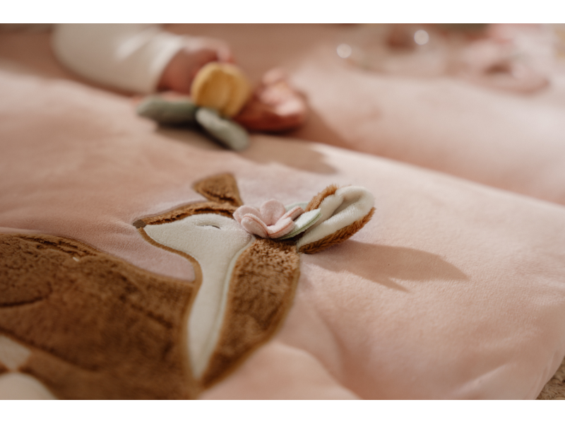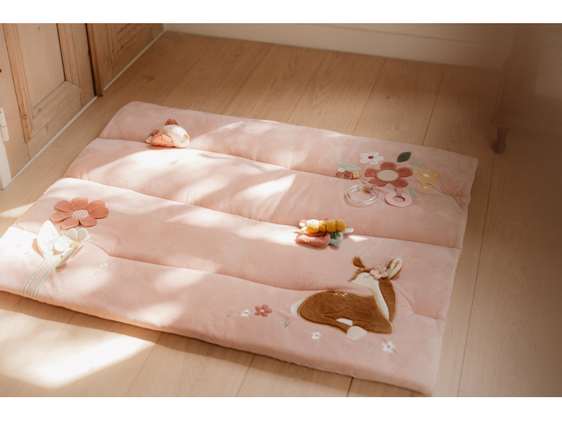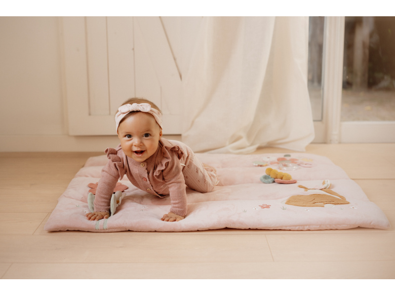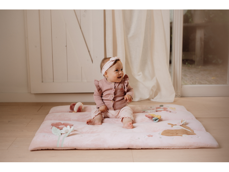 Měkká hrací deka nabízí pohodlí a různorodé aktivity pro zabavení vašeho dítěte. Na dece najdete plyšovou srnku, kytičky s bezpečným zrcátkem a šusticími lístky, plyšového ptáčka a motýlka i chrasticí kroužky a kousátko. Hrací deka je součástí designové kolekce hraček Little Dutch Fairy Garden inspirované životem na zahradě. Rozměry: 80 x 100 cm Vhodné pro děti od narození.