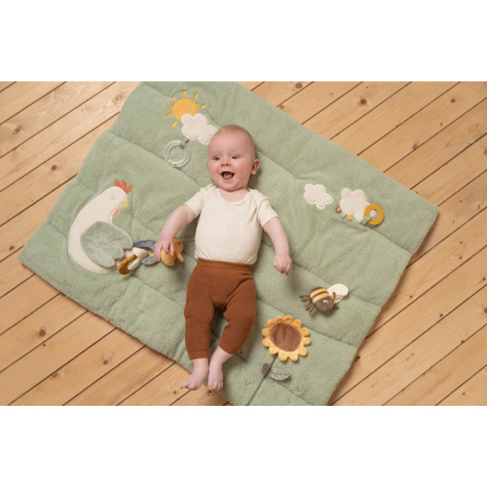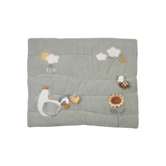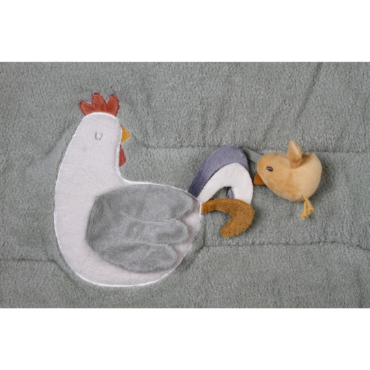 Měkká hrací deka nabízí pohodlí a různorodé aktivity pro zabavení vašeho dítěte. Na dece najdete slepičku s bezpečným zrcátkem schovaným pod křídlem, kuřátko, včelku s šusticími křídly i mráčky s chrasticími kroužky a kousátkem. Hrací deka je součástí designové kolekce hraček Little Dutch Farma. Rozměry: 80 x 100 cm Vhodné pro děti od narození.