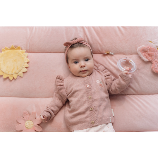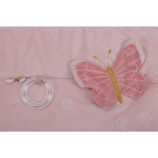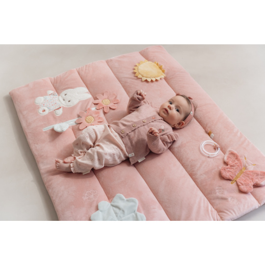 Měkká hrací deka nabízí pohodlí a různorodé aktivity pro zabavení vašeho dítěte. Na dece najdete plyšovou králičí holčičku Miffy, sluníčko s bezpečným zrcátkem, kytičku, čtyřlístek s šusticími lístky, plyšového motýlka i chrasticí kroužek. Hrací deka je součástí kolekce hraček Little Dutch Miffy, jejichž ústřední postavou je roztomilá králičí holčička Miffy, známá z knížek pro děti holandského spisovatele Dicka Bruny. Rozměry: 80 x 100 cm Složení: 100% polyester Vhodné pro děti od narození.