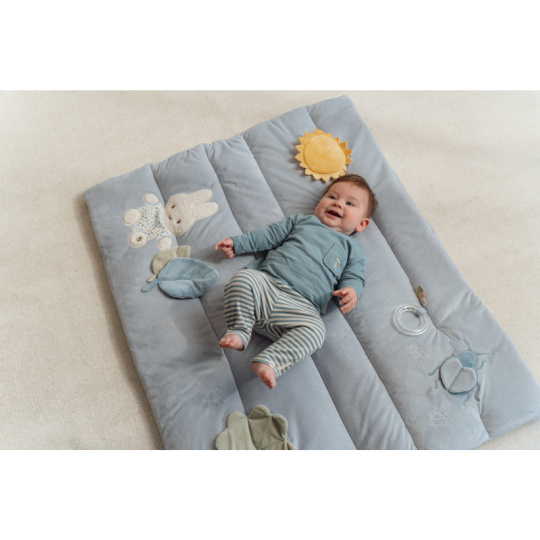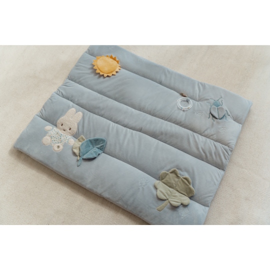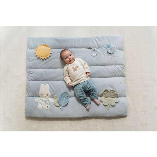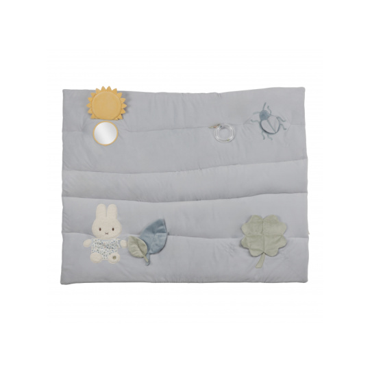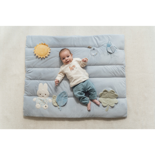 Měkká hrací deka nabízí pohodlí a různorodé aktivity pro zabavení vašeho dítěte. Na dece najdete plyšovou králičí holčičku Miffy, sluníčko s bezpečným zrcátkem, lístky, čtyřlístek s šusticími lístky, plyšového broučka i chrasticí kroužek. Hrací deka je součástí kolekce hraček Little Dutch Miffy, jejichž ústřední postavou je roztomilá králičí holčička Miffy, známá z knížek pro děti holandského spisovatele Dicka Bruny. Rozměry: 80 x 100 cm Složení: 100% polyester Vhodné pro děti od narození.