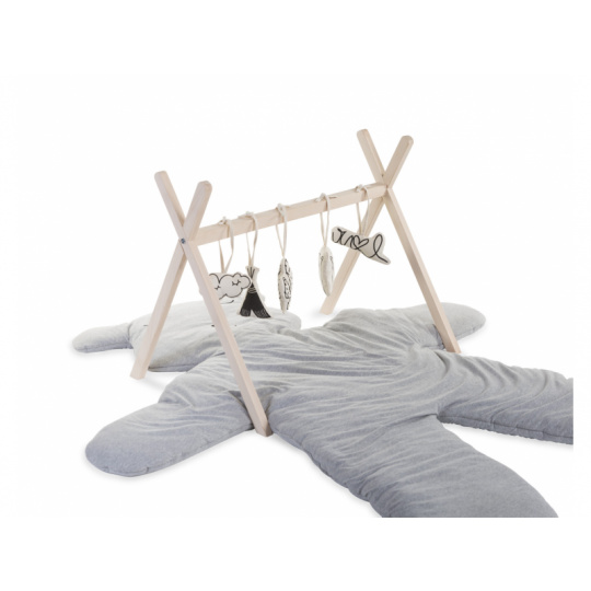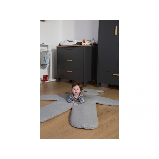 Měkká hrací deka v podobě obrovského medvěda zpříjemní hraní dítěte na zemi a zároveň slouží jako krásná dekorace dětského pokoje. Deka je potažena příjemnou žerzejovou textilií ze 100% bavlny. Výplň: 100% polyester. Rozměry: 150 x 123 x 5 cm