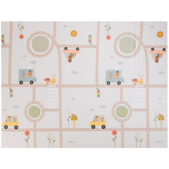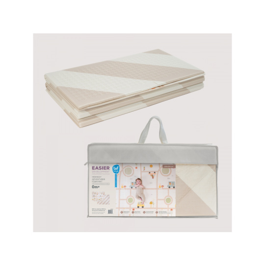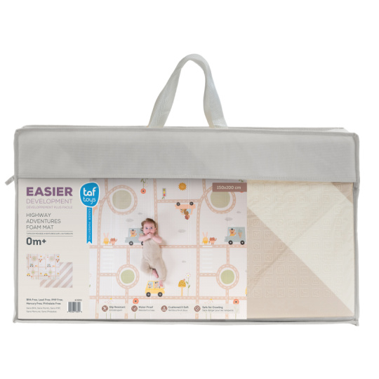 Dopřejte svému miminku měkké, bezpečné místo na hraní, lezení a objevování. Extra velká, oboustranná pěnová hrací deka Taf Toys kombinuje praktičnost, pohodlí a styl – ideální pro moderní rodiny s dětmi od narození. Odolná & stylová - prémiová pěnová vrstva s voděodolným povrchem pro použití doma i venku Měkká a bezpečná - tlumí nárazy, chrání před chladem a tvrdou podlahou - ideální pro první pokusy o lezení a převracení Praktická velikost - rozměr 150 x 200 cm poskytuje dostatek prostoru na hraní, po složení do tašky ji vezmete s sebou kamkoli potřebujete Oboustranné provedení - výrazné barevné ilustrace s doprvními motivy na jedné straně a moderní jednoduchý design na straně druhé Snadná údržba - voděodolná a lehce omyvatelná, stačí otřít vlhkým hadříkem Zdraví na prvním místě - vyrobena z netoxických materiálů bez BPA, ftalátů, olova, rtuti a dalších škodlivin. Co podporuje: Kognitivní rozvoj - natištěné motivy a živé barvy podněcují vnímání vzorů a učení barev Pohyb & lezení - podporuje fyzický vývoj, první plazení i trénink rovnováhy během času na bříšku Emoční rozvoj - nádherné ilustrace rozvíjí fantazii a emocionální vnímání skrze hru Snadná údržba otřením. Vhodné pro děti od narození.