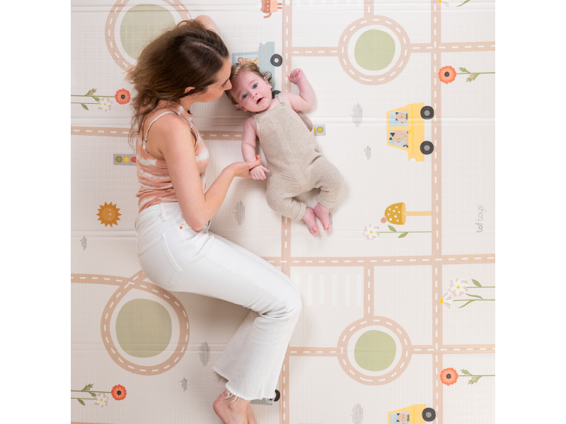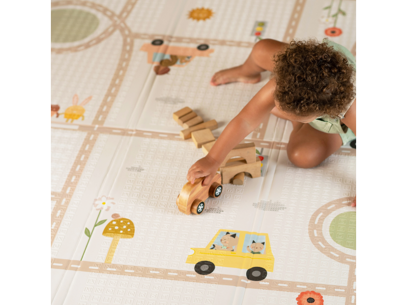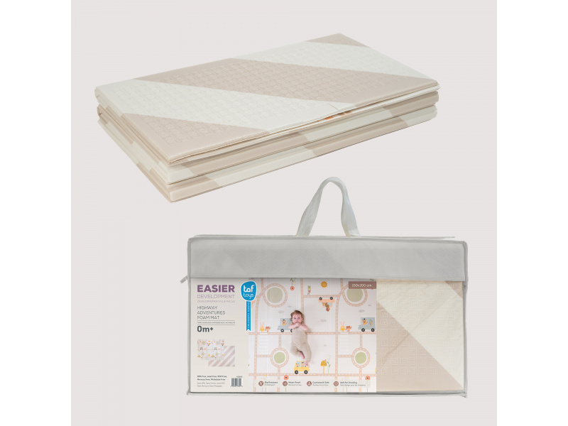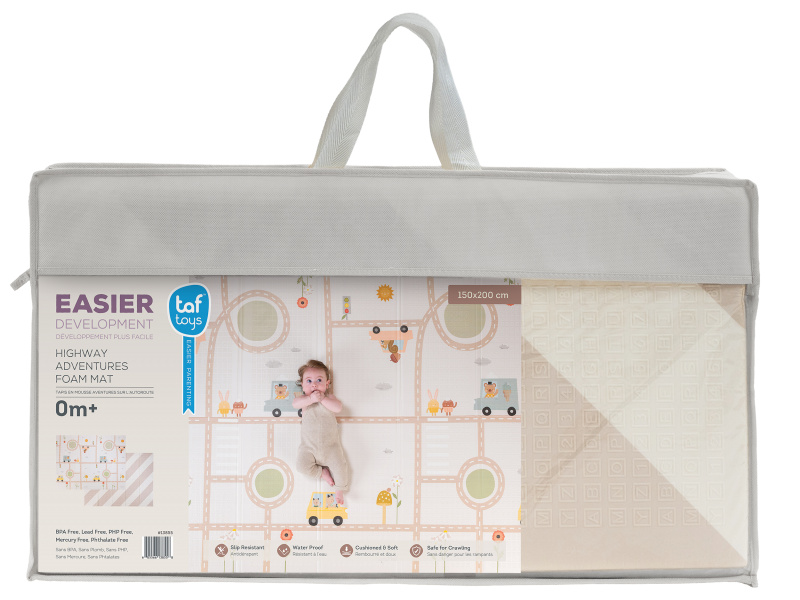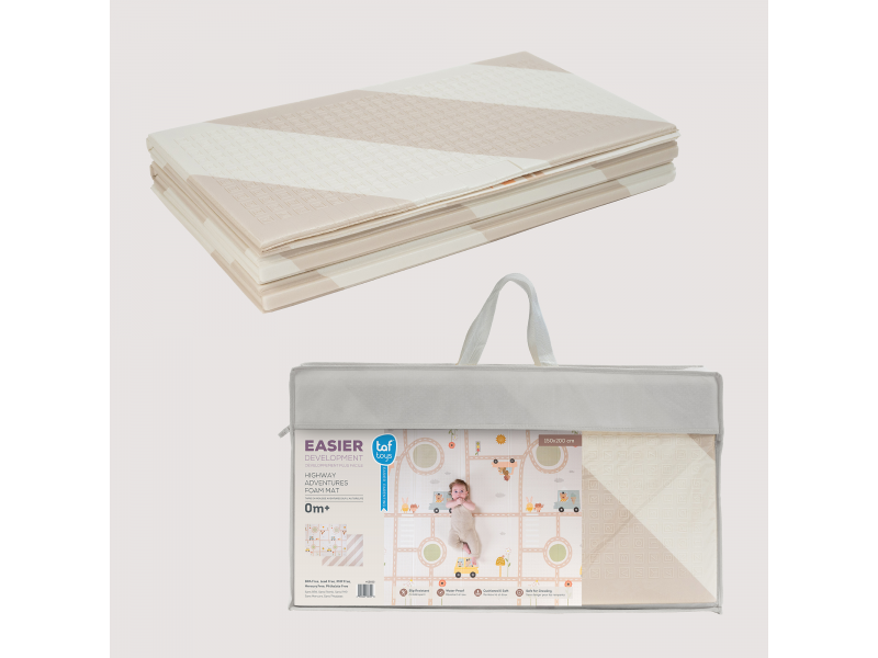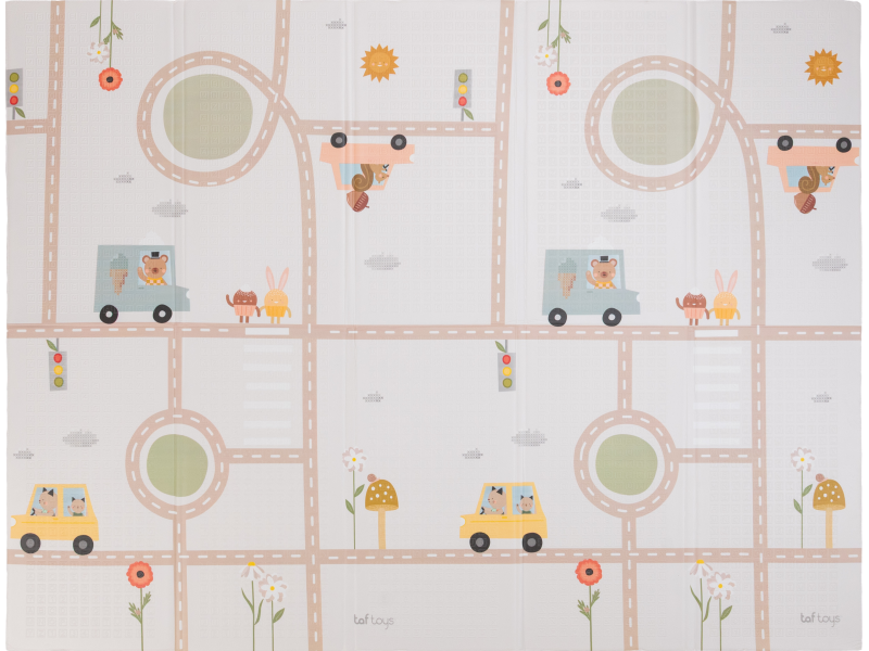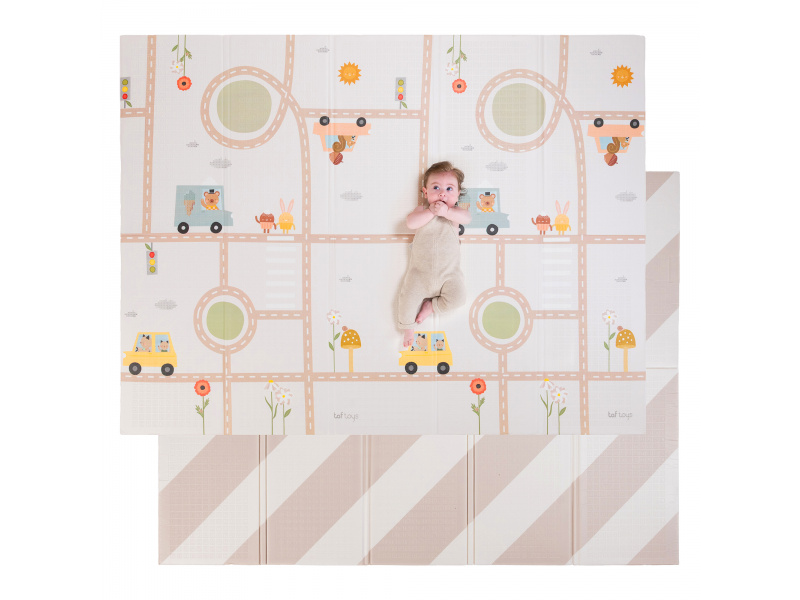Dopřejte svému miminku měkké, bezpečné místo na hraní, lezení a objevování. Extra velká, oboustranná pěnová hrací deka Taf Toys kombinuje praktičnost, pohodlí a styl – ideální pro moderní rodiny s dětmi od narození. Odolná & stylová - prémiová pěnová vrstva s voděodolným povrchem pro použití doma i venku Měkká a bezpečná - tlumí nárazy, chrání před chladem a tvrdou podlahou - ideální pro první pokusy o lezení a převracení Praktická velikost - rozměr 150 x 200 cm poskytuje dostatek prostoru na hraní, po složení do tašky ji vezmete s sebou kamkoli potřebujete Oboustranné provedení - výrazné barevné ilustrace s doprvními motivy na jedné straně a moderní jednoduchý design na straně druhé Snadná údržba - voděodolná a lehce omyvatelná, stačí otřít vlhkým hadříkem Zdraví na prvním místě - vyrobena z netoxických materiálů bez BPA, ftalátů, olova, rtuti a dalších škodlivin. Co podporuje: Kognitivní rozvoj - natištěné motivy a živé barvy podněcují vnímání vzorů a učení barev Pohyb & lezení - podporuje fyzický vývoj, první plazení i trénink rovnováhy během času na bříšku Emoční rozvoj - nádherné ilustrace rozvíjí fantazii a emocionální vnímání skrze hru Snadná údržba otřením. Vhodné pro děti od narození.