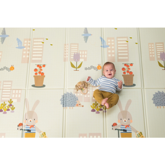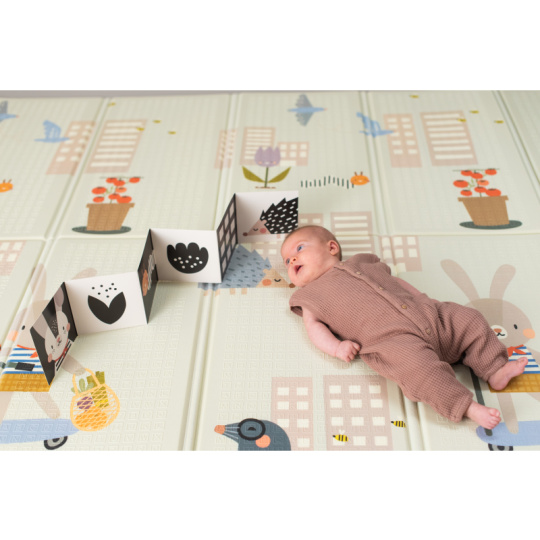 Extra velká, oboustranná pěnová hrací deka vyniká svou univerzálností a pohodlím pro vás i vaše dítě od narození. rozměr 150 x 200 cm s možností složení do kompaktního rozměru pro přenášení i skladování měkké provedení s voděodolným povrchem pro použití doma i venku oboustranné provedení s výraznými barevnými ilustracemi na jedné straně a moderním jednoduchým designem na straně druhé součástí balení je i krásné oboustranné leporelo s ilustracemi pro dvě vývojová stádia dítěte (vysoce kontrastní jednoduché obrázky pro děti od narození, barevné výrazné obrázky pro děti od cca 3 měsíců) Materiál, ze kterého je hrací podložka vyrobena, je zcela bezpečný pro zdraví vašeho dítěte a neobsahuje BPA, PVC, olovo, ftaláty ani rtuť. Snadná údržba otřením. Vhodné pro děti od narození.