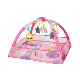 Hrací deka s hrazdou KikkaBoo Pink Sky je ideální volbou pro rozvoj dítěte v prvních letech života. Pohodlná hrací deka s krásnými ilustracemi je navržena tak, aby podporovala smyslový rozvoj a motorické dovednosti dítěte od narození až do 36 měsíců. Všestranné možnosti hry Vhodná pro hru na zádech, na bříšku i vsedě Podporuje rozvoj jemné i hrubé motoriky během jednotlivých vývojových fází Stimulující prostředí pro smysly Obsahuje 18 barevných míčků pro zábavnou hru Odnímatelná hrazda s interaktivními hračkami poskytuje vizuální a hmatovou stimulaci Pomáhá rozvíjet koordinaci rukou a nohou natahováním a kopáním Bezpečný a přizpůsobivý prostor Umožňuje uzavřít všechny čtyři strany pro vytvoření útulného prostředí pro hru Vhodné i jako míčkový bazének pro větší děti Rozměry: 78 × 75 × 50 cm Hmotnost: 0,61 kg Vhodné pro děti od narození.