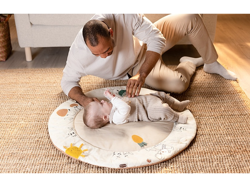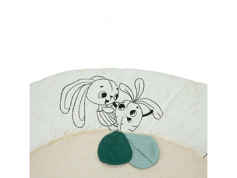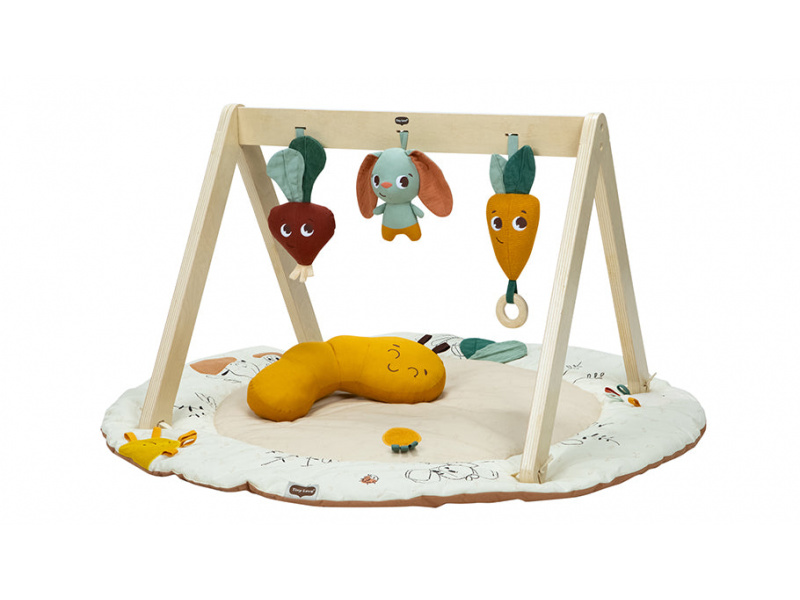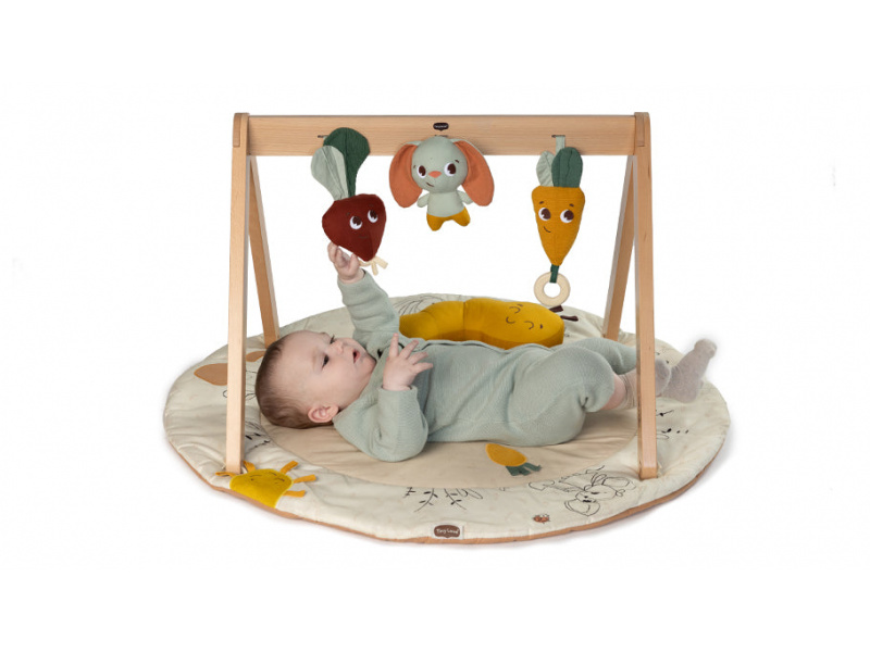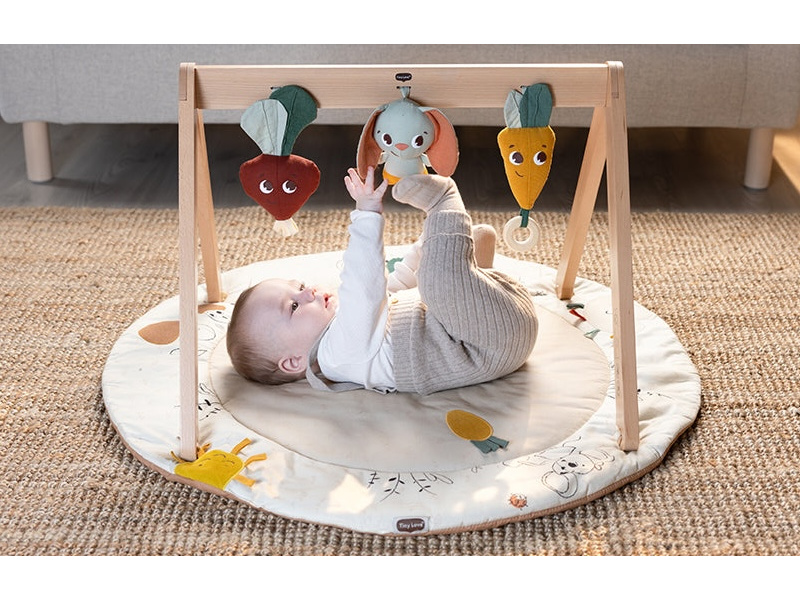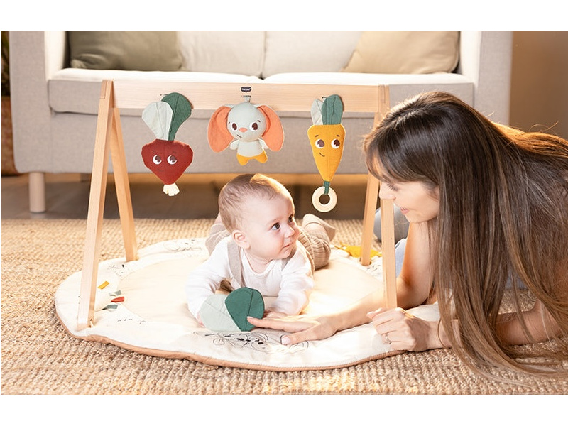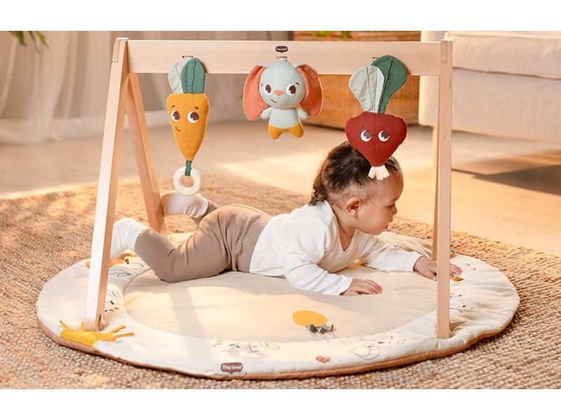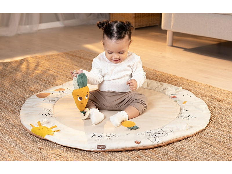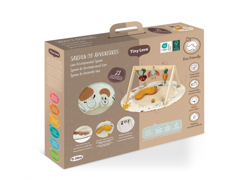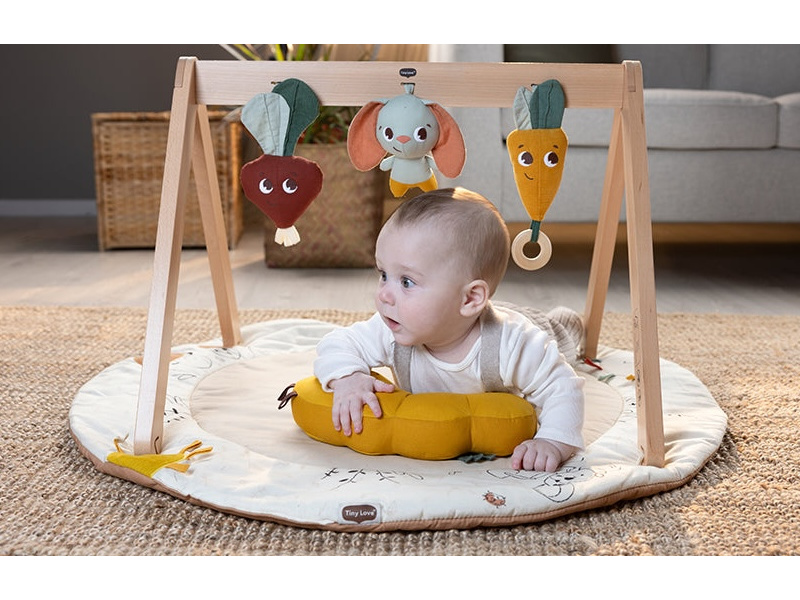 Krásná hrací deka s dřevěnou hrazdou Tiny Love navržená s láskou a péčí odborníky na vývoj dítěte povzbuzuje dítě k objevování a hraní. Deka nabízí zážitkové prostředí plné vyvážené stimulace a vypráví kouzelný příběh inspirovaný přírodou. Polštářek pro hru na bříšku v podobě housenky podněcuje dítě ke hře na bříšku. Pro malého kojence, který tráví většinu dne i noci ležením na zádech, je důležité, aby trávil několikrát denně čas ležením na bříšku a takzvaným “pasením koníčků”. Poloha na bříšku přináší děťátku jiný pohled na svět a posiluje krční a zádové svaly, které později umožňují dítěti začít se přetáčet, lézt a sedět bez opory. Odnímatelná dřevěná hrazda umožňuje zavěšení hraček v podobě chrasticí řepy, roztomilého králíčka a mrkvičky s kroužkem pro uchopení. Přímo na dece najdete textilní aplikace s různými texturami a stážkami pro zkoumání. Deka je součástí udržitelné kolekce Tiny Love Garden of Adventures, která byla vytvořena s láskou a péčí o naši planetu. Kolekce, inspirovaná výtvory přírody, je navržena tak, aby podporovala dítě ve vývoji a objevování světa kolem sebe. Vyrobeno z materiálů odpovědně získaných z odpovědných zdrojů, které splňují nejvyšší standardy udržitelnosti a jsou certifikovány dle standardu OEKO-TEX® STANDARD 100. Rozměry: 90 x 90 x 47 cm Složení: dřevo, bavlna, výplň z recyklovaného polyesteru Deku je možno prát v pračce. Vhodné pro děti od narození do 36 měsíců.