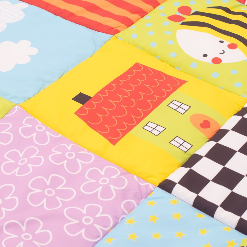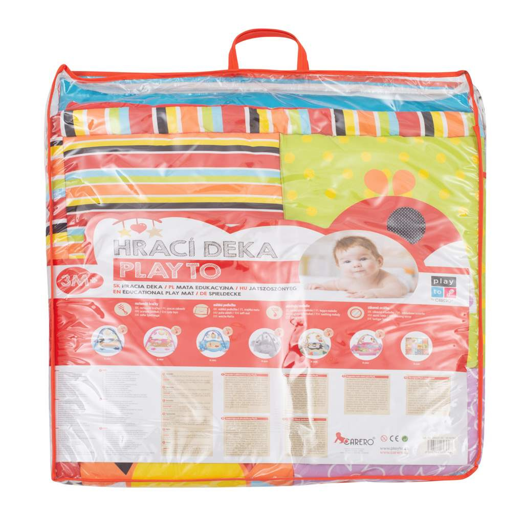Velká textilní hrací deka PlayTo je díky krásným barvám, veselým motivům zvířátek a různobarevným vzorům skvělým místem pro hraní a odpočinek vašeho dítěte. Deka je velmi příjemná na dotek a díky měkké výplni vytváří komfortní prostor a skvěle izoluje od studené podlahy. Pokud deku zrovna nepoužíváte nebo ji chcete přibalit na cesty, snadno ji složíte a uchováte před prachem nebo případným poškozením v praktickém pouzdře.