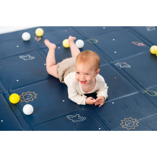 Extra velká, oboustranná pěnová hrací deka vyniká svou univerzálností a pohodlím pro vás i vaše dítě od narození. Jedinečné zvednuté okraje vytvářejí bezpečnou, uzavřenou hrací plochu, udržují hračky a míčky na dece a poskytují miminku pocit bezpečí. Starším dětem okraje snadno položíte, abyste maximalizovali plochu na hraní. rozměr 150 x 180 cm s možností složení do kompaktního rozměru pro přenášení i skladování (taška na zip je součástí balení) měkké provedení s voděodolným povrchem pro použití doma i venku oboustranné provedení s krásným potiskem součástí balení je 12 barevných míčků Materiál, ze kterého je hrací podložka vyrobena, je zcela bezpečný pro zdraví vašeho dítěte a neobsahuje BPA, PVC, olovo, ftaláty ani rtuť. Snadná údržba otřením. Vhodné pro děti od narození.