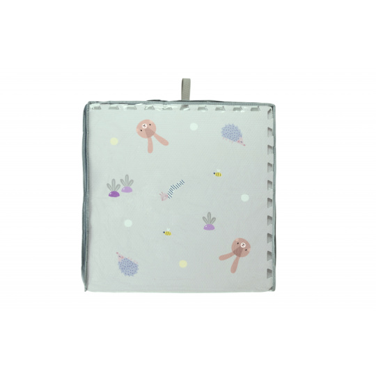 Extra velká hrací podložka tvořená pěnovými puzzle díly s krásným potiskem motivů ze života na zahradě nabízí pohodlí pro vás i vaše dítě od narození. Materiál je ohebný, odolný, tlumí nárazy a tepelně izoluje. Podložka je ideální pro hraní doma i na cestách, po rozložení na jednotlivé díly ji snadno uložíte do tašky se zipem, ve které je podložka dodávána. Materiál, ze kterého je hrací podložka vyrobena, je zcela bezpečný pro zdraví vašeho dítěte a neobsahuje BPA, PVC, olovo, ftaláty ani rtuť. Voděodolný povrch se snadno udržuje otřením. Rozměry: 120 x 180 cm Vhodné pro děti od narození.