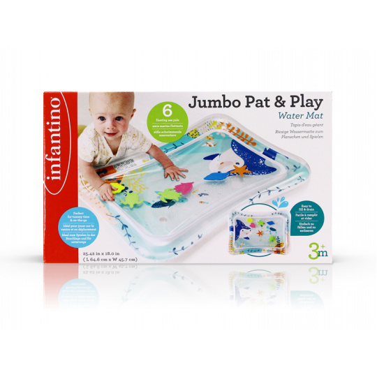 Interaktivní hrací pult připomíná skutečné akvárium s vodními živočichy. Po naplnění vodou se figurky mořských tvorů uvnitř pohybují ve vodě, kdykoli dítě na pult sáhne rukou. Ideální hračka pro hru na bříšku a později pro hru vsedě na zemi. Jednoduché použití, stačí nafouknout a naplnit vodou. Když hračku nepoužíváte, snadno ji opět vyfouknete a vodu vylejete. Hračku je tak možné vzít s sebou i kamkoli na cesty. Rozměry: 65 x 46 cm Vhodné pro děti od 3 měsíců.