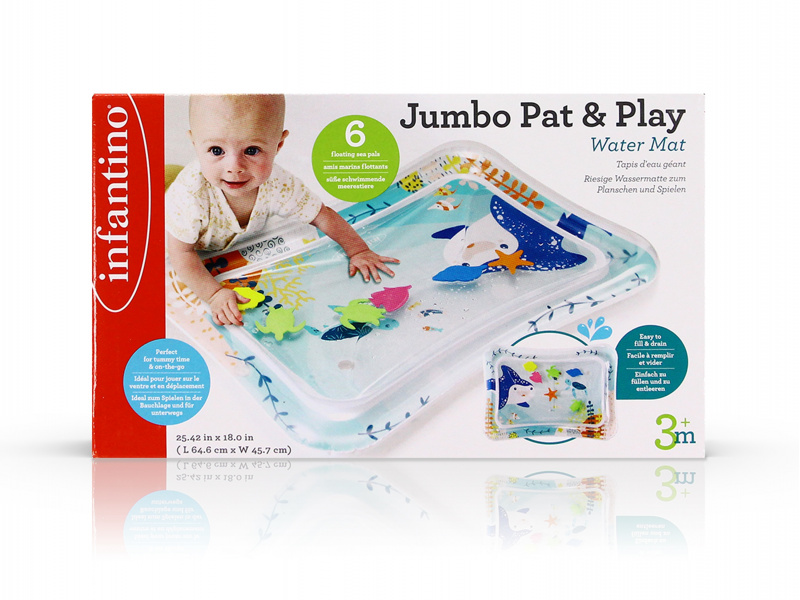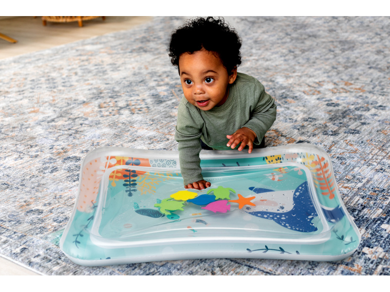 Interaktivní hrací pult připomíná skutečné akvárium s vodními živočichy. Po naplnění vodou se figurky mořských tvorů uvnitř pohybují ve vodě, kdykoli dítě na pult sáhne rukou. Ideální hračka pro hru na bříšku a později pro hru vsedě na zemi. Jednoduché použití, stačí nafouknout a naplnit vodou. Když hračku nepoužíváte, snadno ji opět vyfouknete a vodu vylejete. Hračku je tak možné vzít s sebou i kamkoli na cesty. Rozměry: 65 x 46 cm Vhodné pro děti od 3 měsíců.