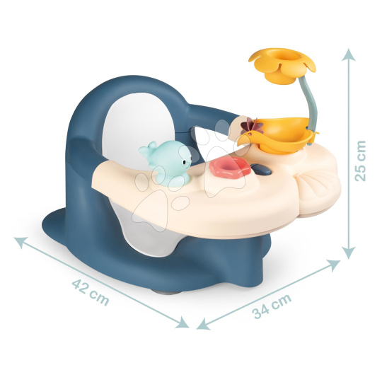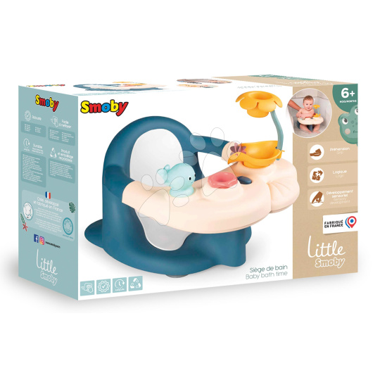 Dětské sedátko do vany Baby Bath Time Little od francouzského výrobce Smoby je skvělý doplněk ke koupání pro nejmenší děti již od 6 měsíců. Chlapci a holčičky sedí pohodlně na sedátku jako na židli a během koupání si výborně zahrají s vodními hračkami. Ergonomické sedátko pro děti je vyrobeno z kvalitního a jemného plastového materiálu, má oblé tvary, takže jsou v něm děti v bezpečí. Křeslo pro děti do vaničky se skládá ze dvou částí - ze stolku s hračkami a z křesla. Sedací část je vhodné pro dítě s minimální hmotností od 6 do 13 kg.