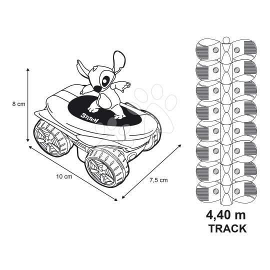 Flexibilní autodráha Stitch Flextreme Stitch z dílny francouzských designérů Smoby umožní dětem objevovat nový herní svět. Chlapci i dívky se již od 4 let mohou těšit na zábavné skládání pružné autodráhy o délce až 440 cm, přičemž mají k dispozici 184 dílů autodráhy, které k sobě jednoduše připojují bez jakéhokoli nářadí. Inovativní koncept pomáhá konstruktérům objevovat stále nové způsoby výstavby dráhy, přičemž ji tvarují do různých tvarů, spirál, využívají překážky v dětském pokoji. Autodráha s motivem animovaného hrdiny Stitch je vybavena modrými a béžovými dílky autodráhy, startovací plošinou a sponou, o kterou autodráhu upevní a budou mít ještě realističtější zážitky při hře s oblíbeným hrdinou.