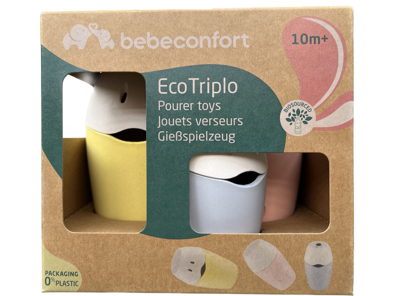 Hračky do vody v podobě kelímků s různými otvory a víčky pro hraní s vodou jsou vyrobeny s ohledem na životní prostředí i zdraví vašeho dítěte z bioplastu. Bioplast je tvořen ze 40% dřevěnými vlákny a ze 60% rostlinným plastem, vyráběným z recyklovaného jedlého oleje. Vhodné pro děti od 10 měsíců.