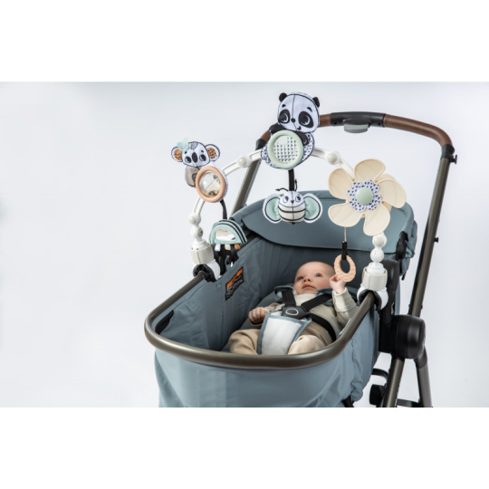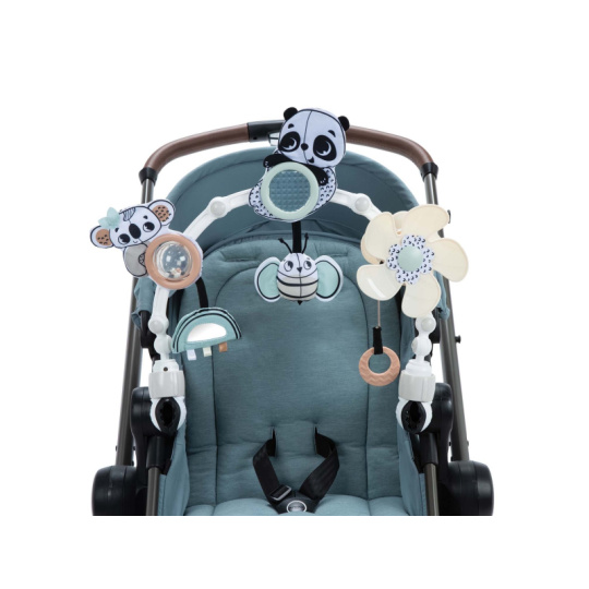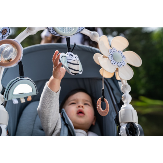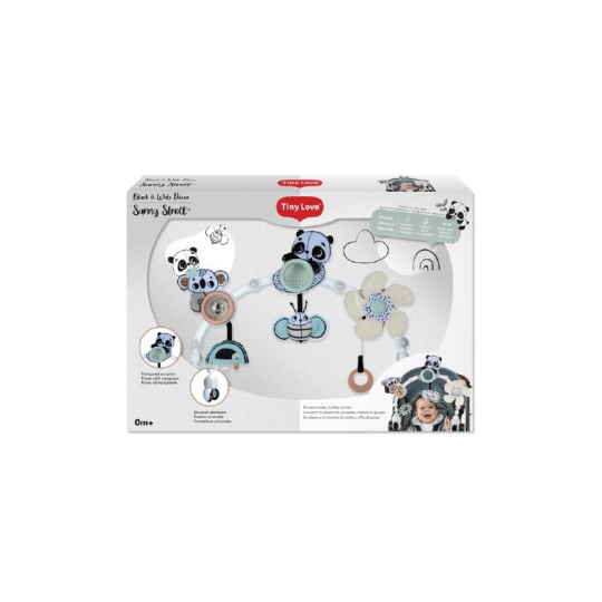 Hrazda Tiny Love je vhodná na kočárek, autosedačku či lehátko. Nabízí množství aktivit pro zabavení dítěte na cestách i doma, např. chrastítko, kousátko, otáčecí větrník nebo bezpečné zrcátko. Hrazda nabízí dva způsoby použití pro dvě vývojová stádia dítěte: Od narození: zavěšené jemně chrasticí a pohybující se hračky s výraznými černobílými motivy upoutají pozornost ležícího dítěte. Od 5 měsíců: dítě začíná hračky aktivně tahat a zkoumat rukama. Hrazda dítě nejen zabaví, ale současně rozvíjí rozvíjí jeho jednotlivé smysly a motorické dovednosti. Hrazdu snadno připevníte s pomocí plastových klipsů k většině kočárků i autosedaček. Klouby umožňují nastavit sklon hrazdy dle potřeby. Vhodné pro děti od narození.