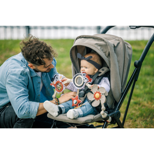 Hrazda Tiny Love je vhodná na kočárek, autosedačku či lehátko. Nabízí množství aktivit pro zabavení dítěte na cestách i doma, např. chrastítko, kousátko, otáčecí větrník nebo bezpečné zrcátko. Hrazda nabízí dva způsoby použití pro dvě vývojová stádia dítěte: Od narození: zavěšené jemně chrasticí a pohybující se hračky s výraznými černobílými motivy upoutají pozornost ležícího dítěte. Od 5 měsíců: dítě začíná hračky aktivně tahat a zkoumat rukama. Hrazda dítě nejen zabaví, ale současně rozvíjí rozvíjí jeho jednotlivé smysly a motorické dovednosti. Hrazdu snadno připevníte s pomocí plastových klipsů k většině kočárků i autosedaček. Klouby umožňují nastavit sklon hrazdy dle potřeby. Vhodné pro děti od narození.
