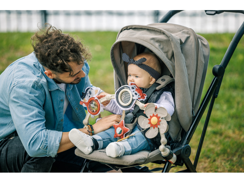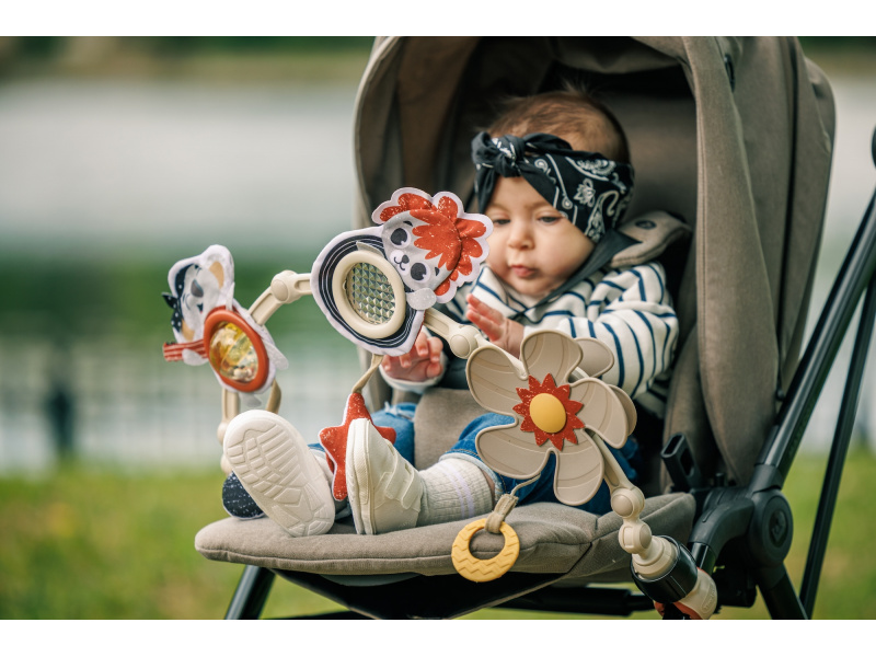 Hrazda Tiny Love je vhodná na kočárek, autosedačku či lehátko. Nabízí množství aktivit pro zabavení dítěte na cestách i doma, např. chrastítko, kousátko, otáčecí větrník nebo bezpečné zrcátko. Hrazda nabízí dva způsoby použití pro dvě vývojová stádia dítěte: Od narození: zavěšené jemně chrasticí a pohybující se hračky s výraznými černobílými motivy upoutají pozornost ležícího dítěte. Od 5 měsíců: dítě začíná hračky aktivně tahat a zkoumat rukama. Hrazda dítě nejen zabaví, ale současně rozvíjí rozvíjí jeho jednotlivé smysly a motorické dovednosti. Hrazdu snadno připevníte s pomocí plastových klipsů k většině kočárků i autosedaček. Klouby umožňují nastavit sklon hrazdy dle potřeby. Vhodné pro děti od narození.