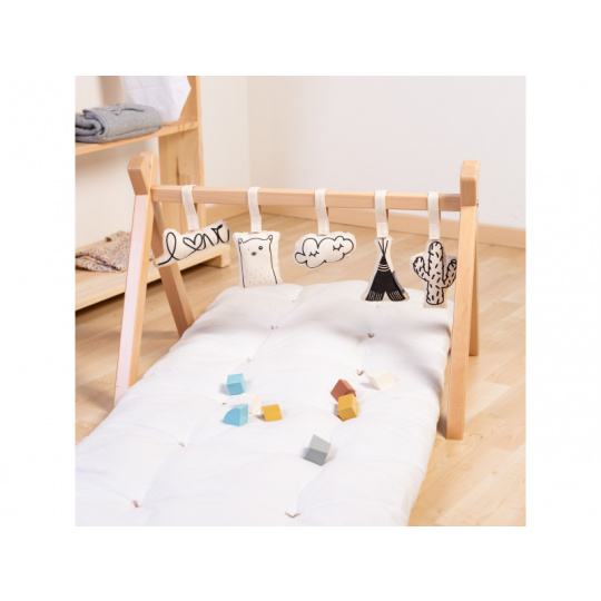 Stabilní hrazda pro zavěšení hraček je vyrobena z bukového dřeva. Umožní vám umístit nad dítě Sadu závěsných hraček Childhome nebo jakékoli jiné závěsné hračky. Hračky nejsou součástí balení. Rozměry: 70 x 50 x 48 cm
