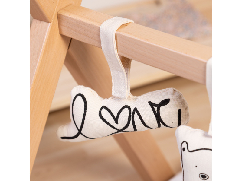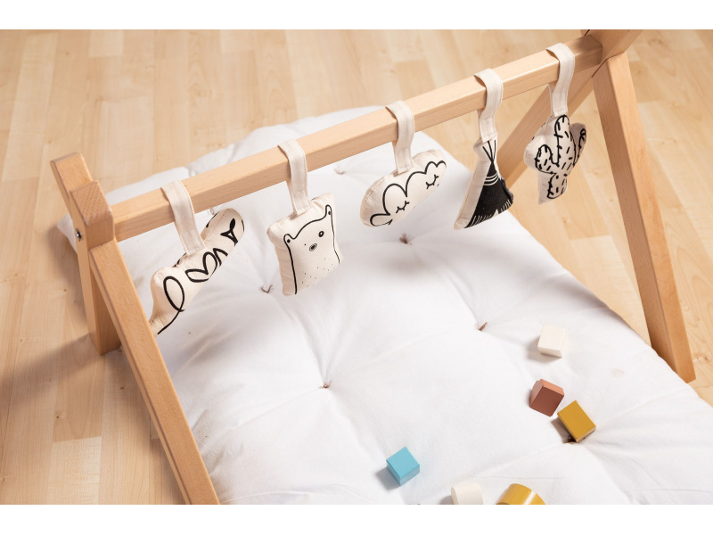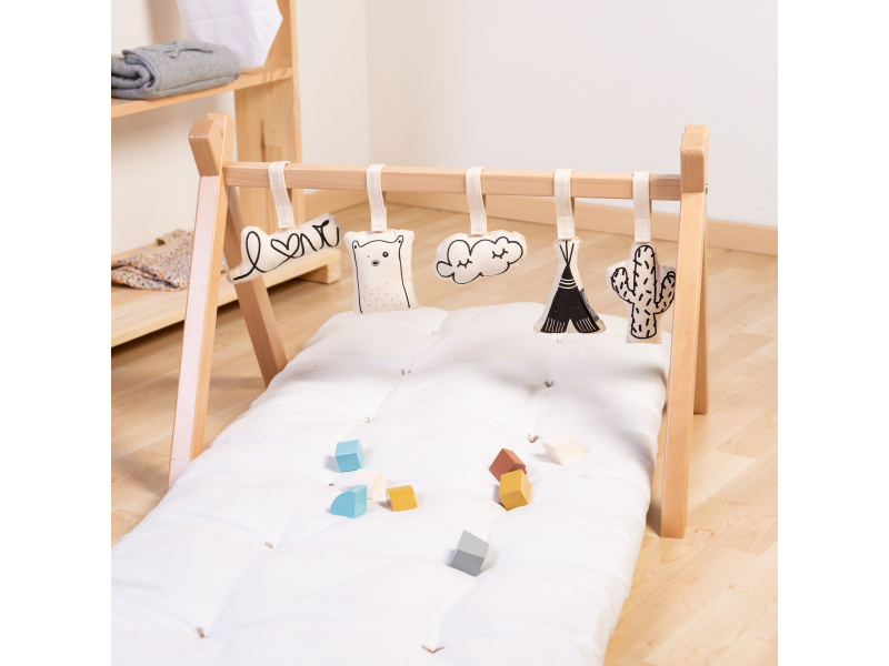 Stabilní hrazda pro zavěšení hraček je vyrobena z bukového dřeva. Umožní vám umístit nad dítě Sadu závěsných hraček Childhome nebo jakékoli jiné závěsné hračky. Hračky nejsou součástí balení. Rozměry: 70 x 50 x 48 cm