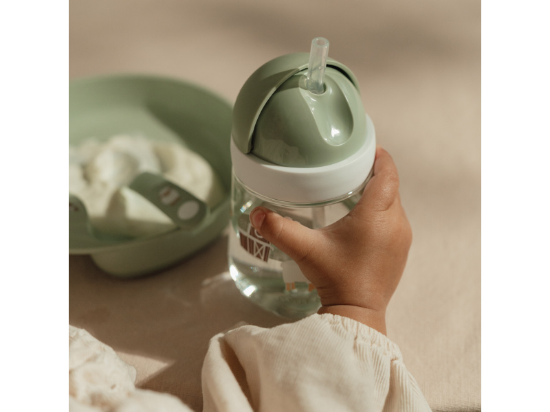 Hrnek s krásným potiskem má zaklapávací měkké brčko, které brání vytečení obsahu hrnku při přenášení. Hrnek je součástí designové kolekce hraček a doplňků pro děti Little Dutch Farma. Hrnek je snadné rozebrat a umýt v myčce včetně silikonového brčka. Materiál: PP, silikon, Tritan Objem: 300 ml Vhodné pro děti od 9 měsíců.