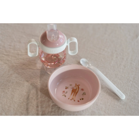 Hrnek s krásným potiskem je vybaven měkkým silikonovým pítkem pro pohodlné pití a držadly pro snadné držení. Víčko brání vytečení obsahu hrnku při přenášení. Hrnek je součástí designové kolekce hraček a doplňků pro děti Little Dutch Fairy Garden, inspirované životem na zahradě. Objem: 200 ml Hrnek je snadné rozebrat a umýt v myčce. Materiál: PP, silikon, Tritan Vhodné pro děti od 6 měsíců.